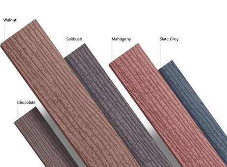 CleverDeck 138 mm-wide solid WPC composite decking comes in five standard colours: Chocolate, Mahogany, Saltbush, Slate Grey and Walnut. Boards have an indented grain/sanded finish on one side and a plain coarse sanded finish on the other, providing a choice of ‘looks’.