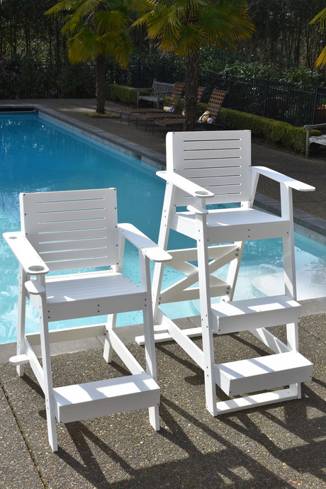 Constructed of high-density polyethylene (HDPE) and marine-grade hardware, they are strong, durable and low maintenance. The 76 cm and 107 cm seat heights are in a range commonly specified for community, hospitality and resort swimming pools.